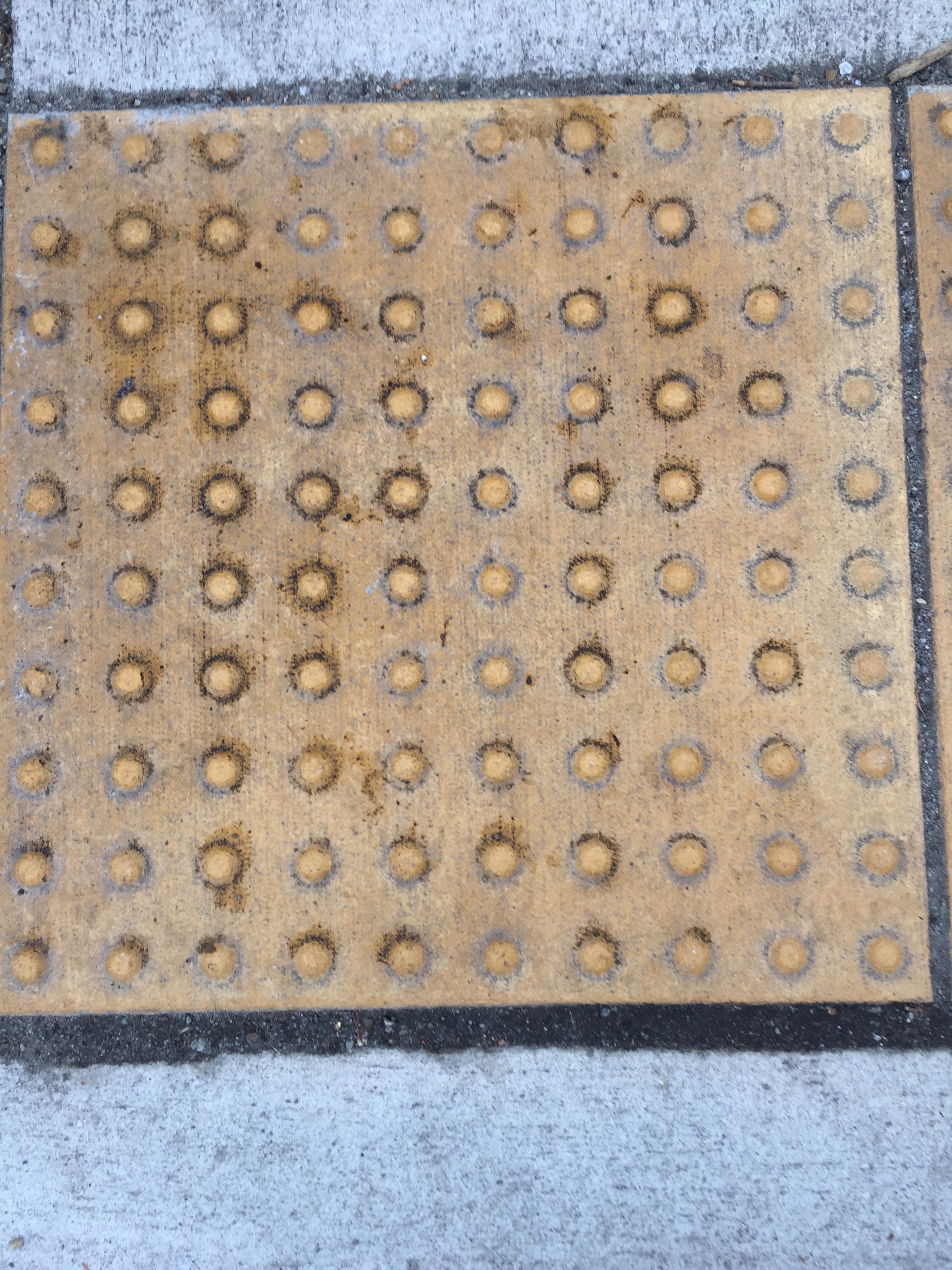 I have noticed that on most sidewalks right before you cross the street there are these yellow bumpy pieces of cement. They look like yellow legos and they are meant for the visually impaired. It helps them detect when they are leaving the sidewalk. I have seen many of them where I live, especially in the busier areas.